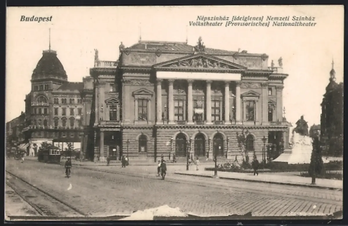 AK Budapest, Népszinház Nemzeti Szinház, Strassenbahn