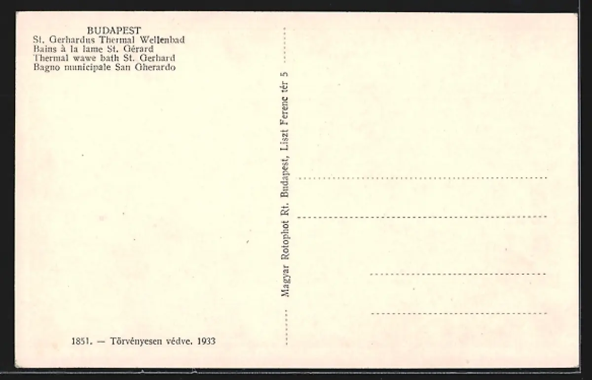 AK Budapest, St. Gerhardus Thermal-Wellenbad aus der Vogelschau