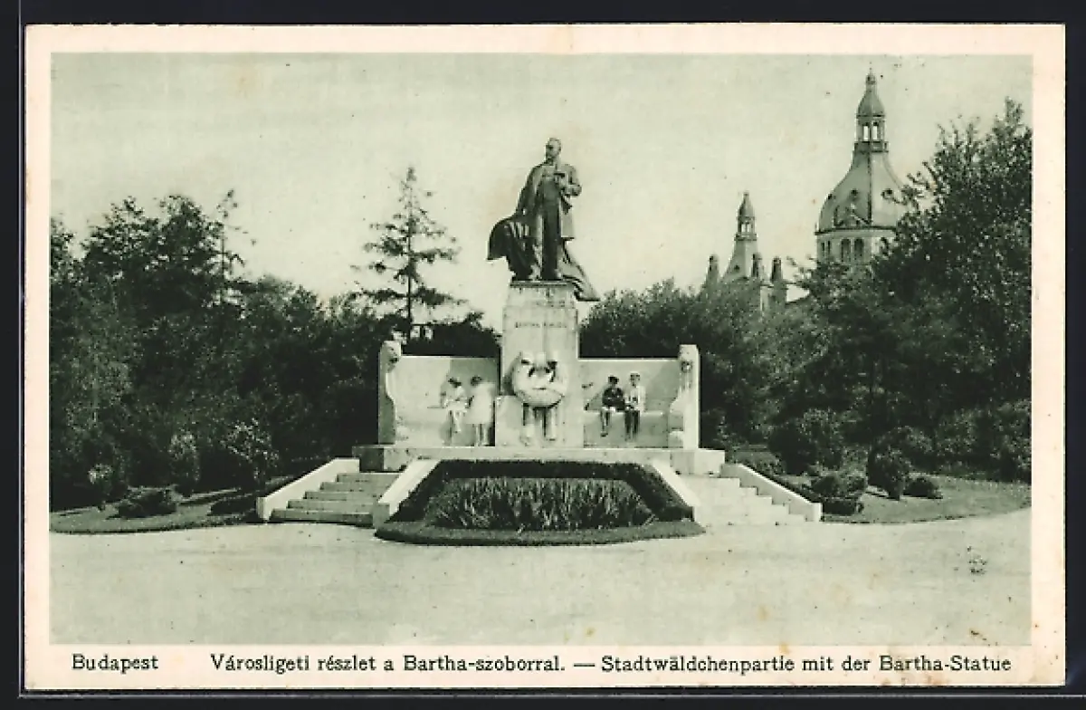 AK Budapest, Stadtwäldchen mit Bartha-Statue