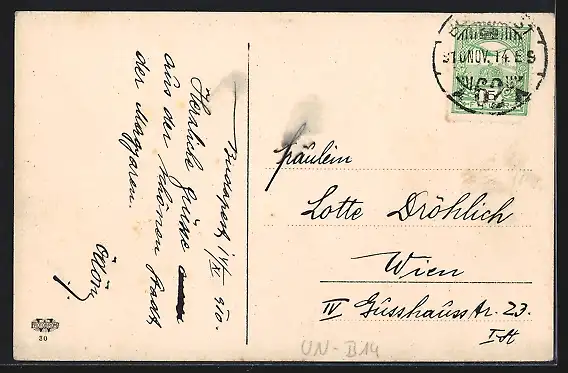 alte Ansichtskarte, gelaufen 1910, Eckknick re. unten, guter Zustand
