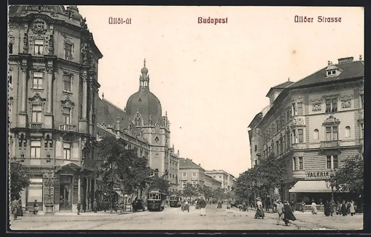 AK Budapest, Üllöer Strasse mit Strassenbahnen