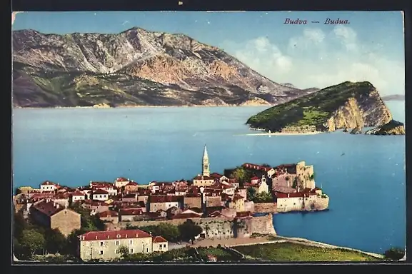 AK Budva / Budua, Gesamtansicht aus der Vogelschau