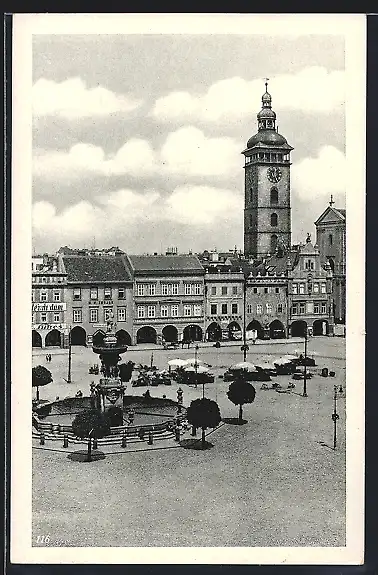 AK Budweis / Ceske Budejovice, Marktplatz mit Samsonbrunnen