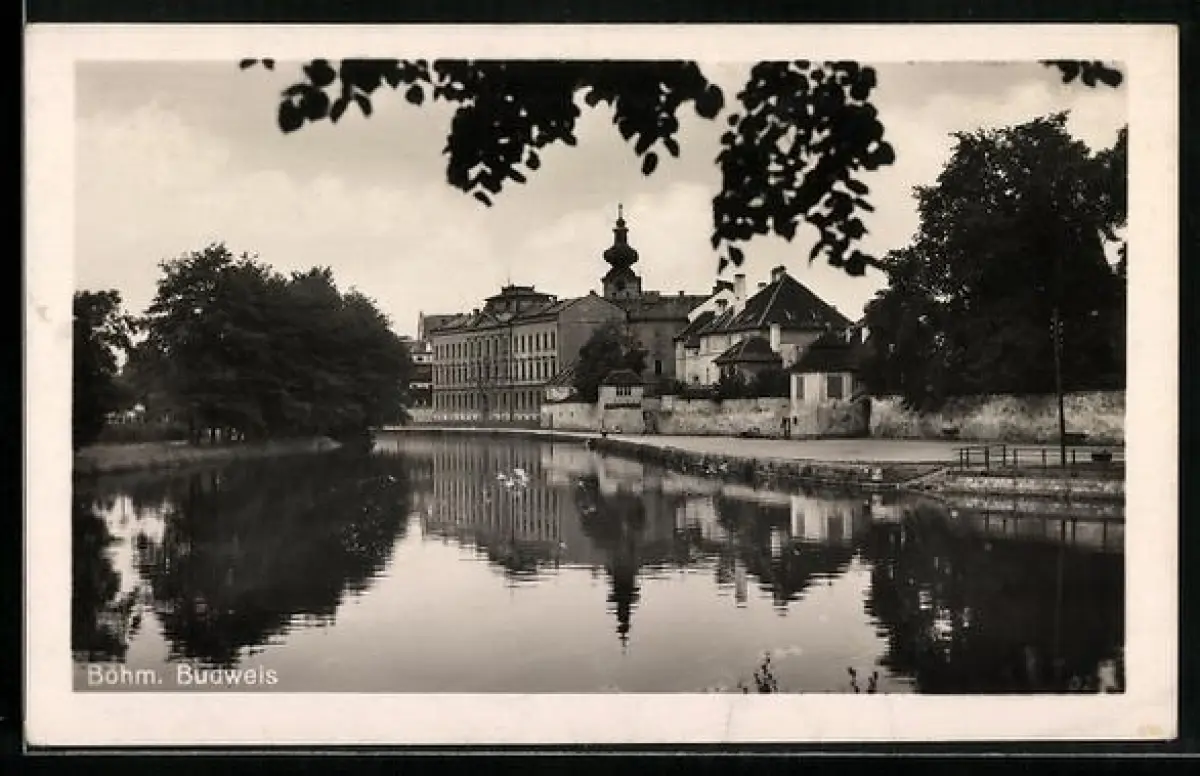 AK Budweis / Ceske Budejovice, Partie am Fluss