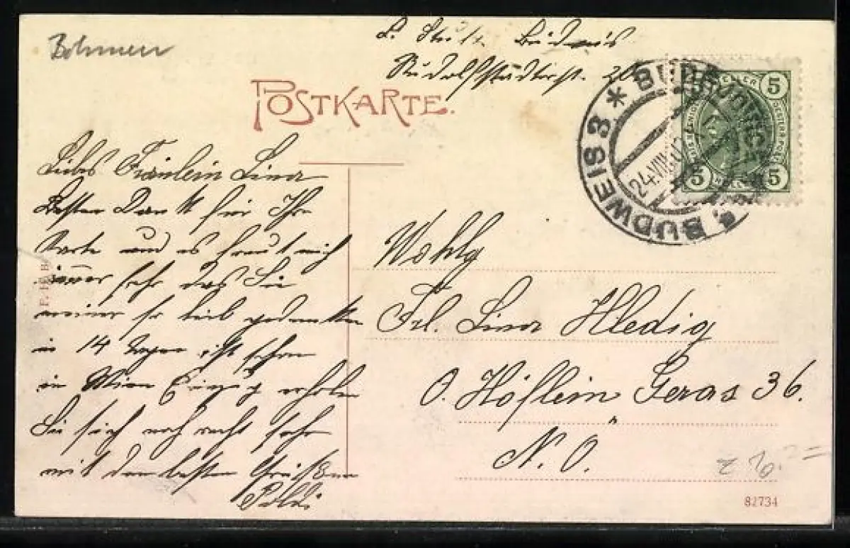 alte Ansichtskarte, gelaufen 1907, Stempelspur, minimaler Einriss re. mittig, guter Zustand