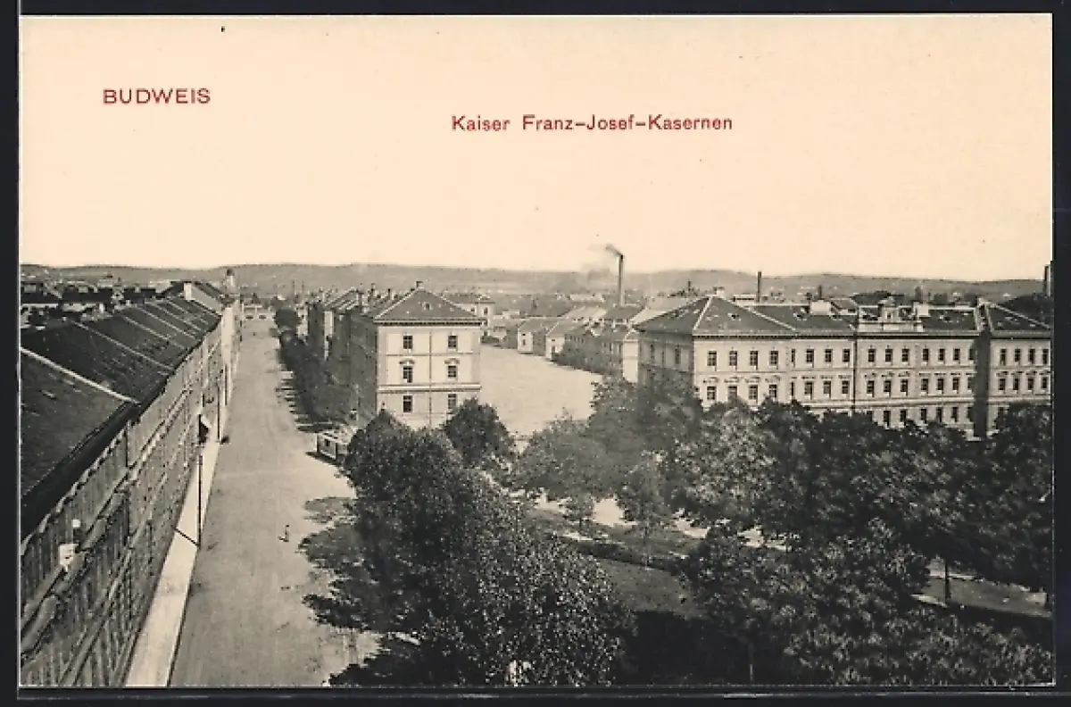 AK Budweis, Ortspartie mit Kaiser Franz-Josef-Kasernen