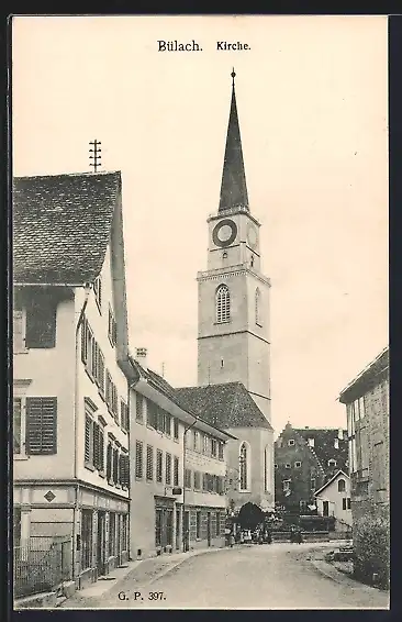 AK Bülach, Ortspartie mit Blick zur Kirche