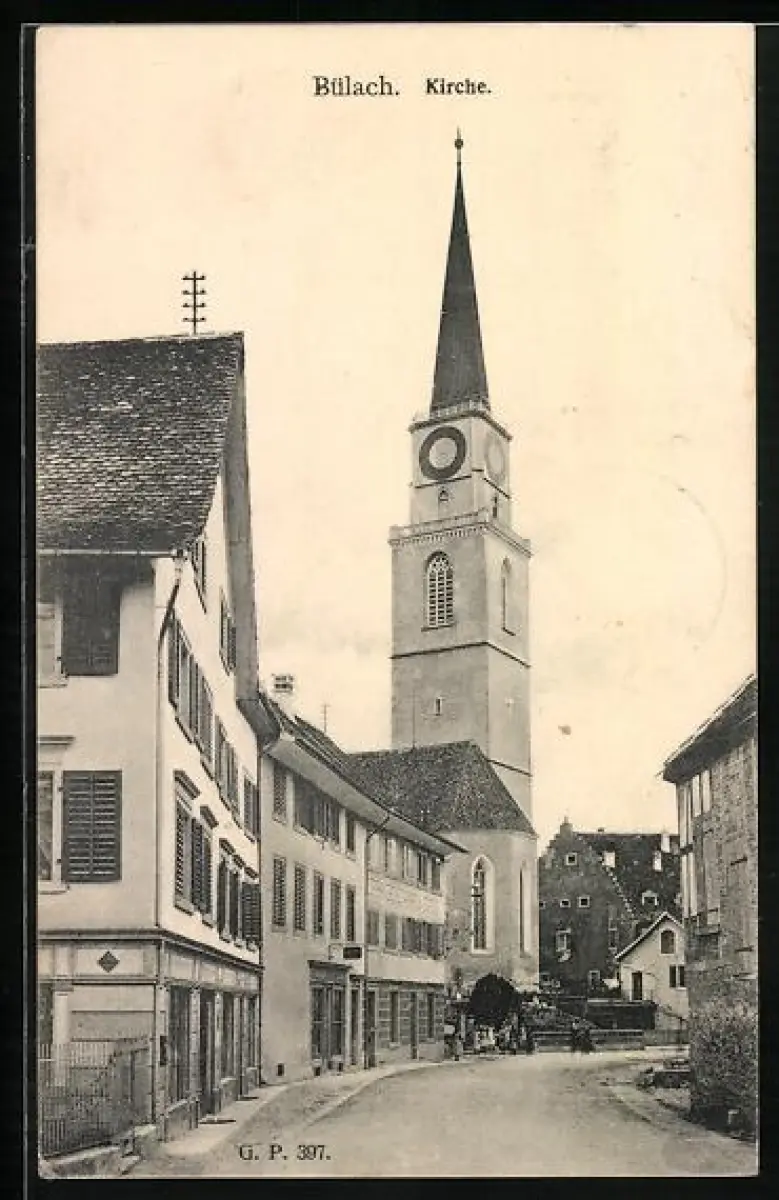 AK Bülach, Ortspartie mit Blick zur Kirche