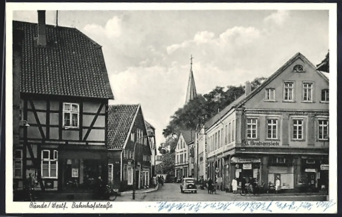 AK Bünde /Westf., Bahnhofstrasse mit Geschäften