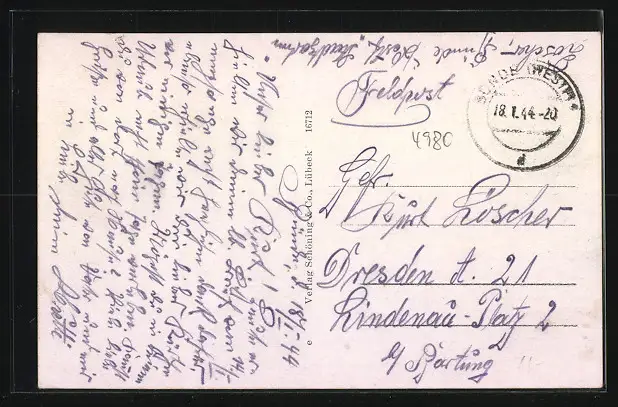 alte Ansichtskarte, gelaufen 1944 als Feldpost, guter Zustand