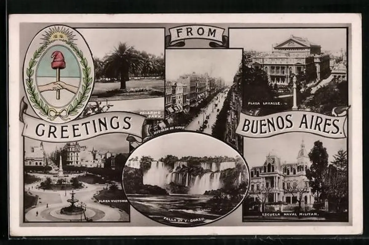 AK Buenos Aires, Avenida del Mayo, Falls of Y-Guazu, Plaza Lavalle, Wappen