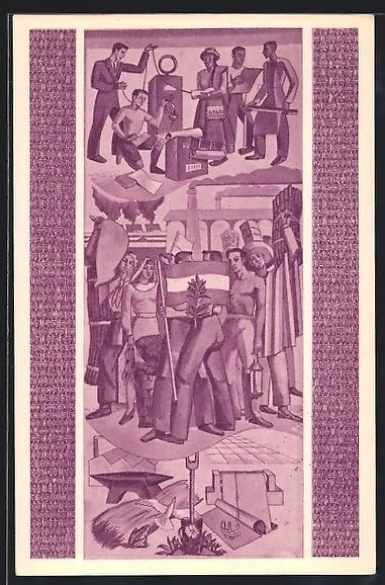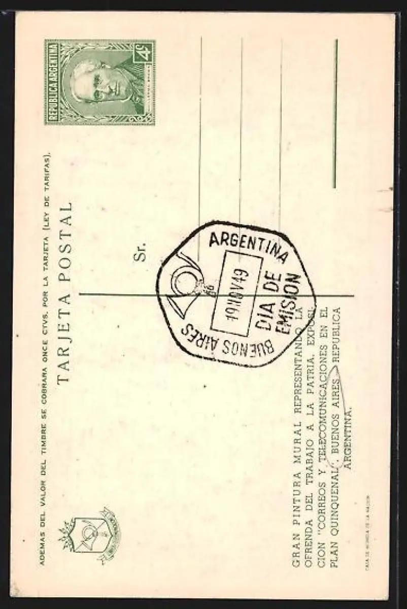 AK Buenos Aires, Exposition Correos y Teleco-Municaciones en el Plan Quinquenal, Gran Pintura Mural