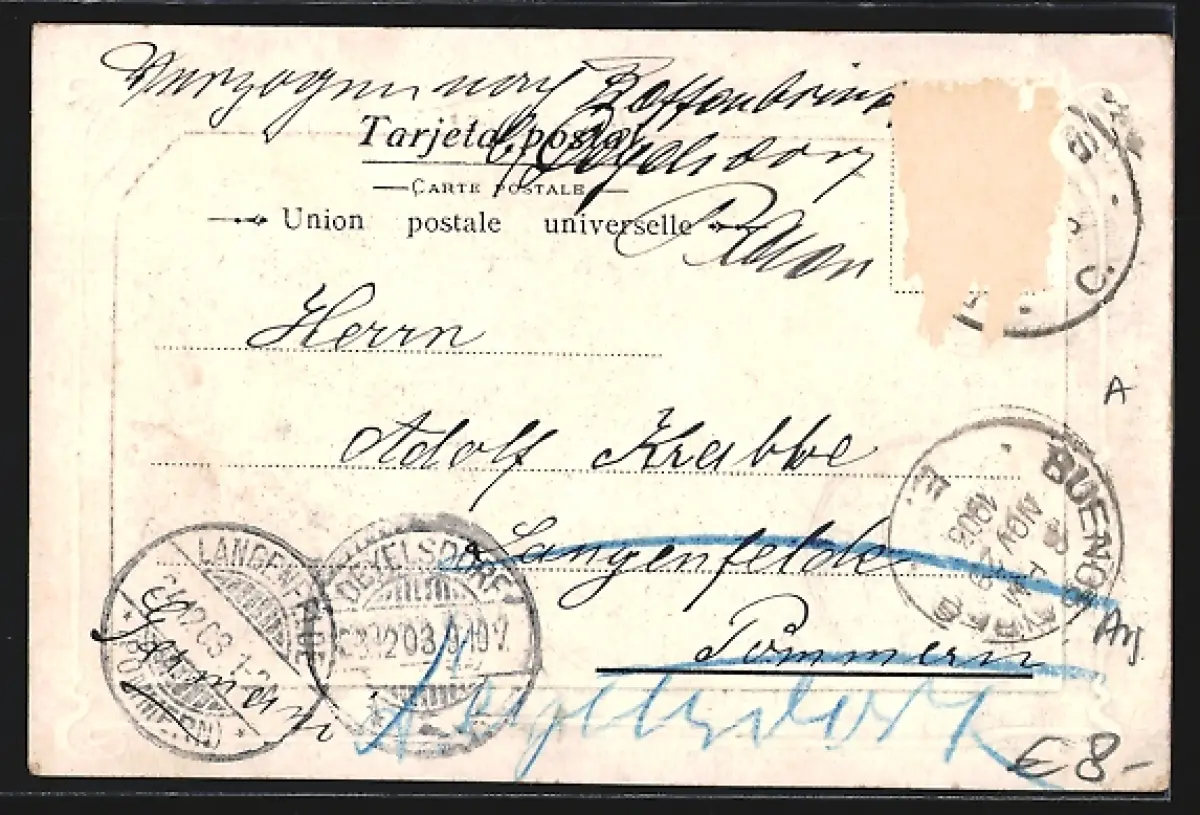 alte Ansichtskarte, gelaufen 1903, Briefmarke entfernt, rückseitig Oberflächenschaden, guter Zustand