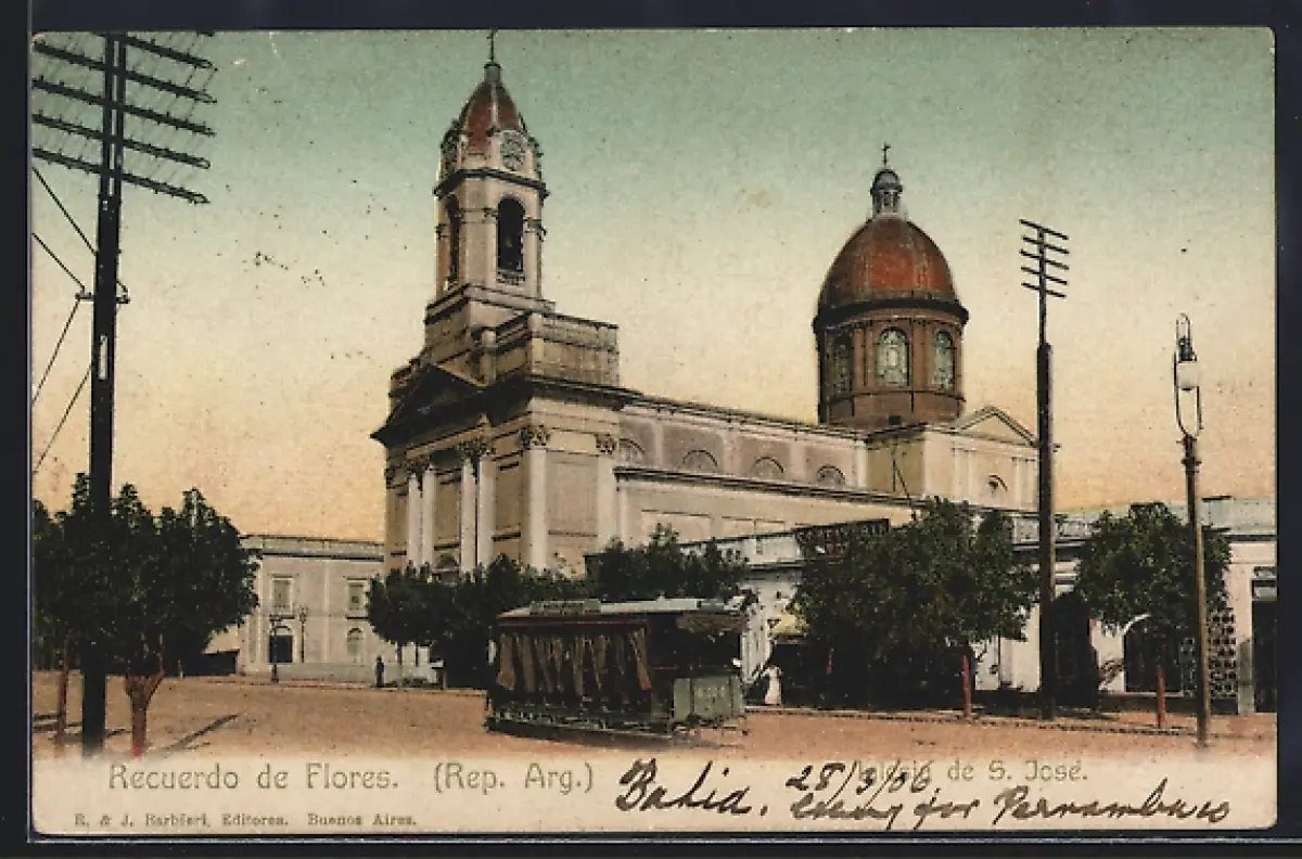 AK Buenos Aires, Iglesia de S. José, Strassenbahn