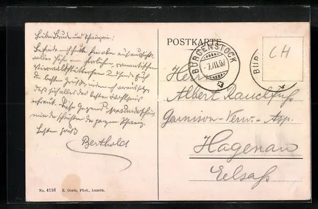 alte Ansichtskarte, gelaufen, Briefmarke entfernt, Abriebspur unten re., guter Zustand