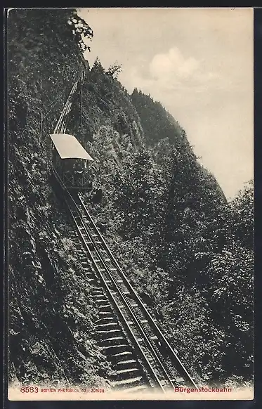 AK Bürgenstockbahn auf dem Weg in das Tal