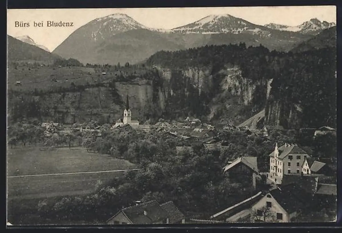 AK Bürs bei Bludenz, Teilansicht mit Kirche