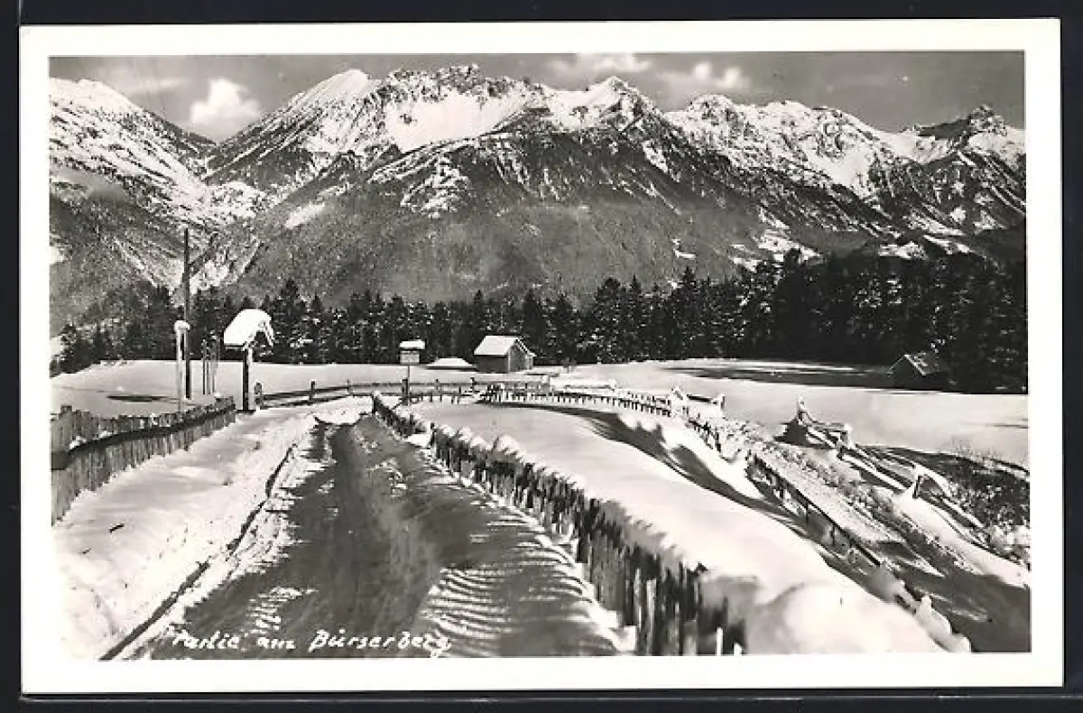 AK Bürserberg, Winterliche Strassenpartie vor Gipfelpanorama