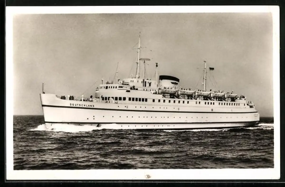 AK Bundesbahn-Hochsee-Fährschiff Deutschland auf hoher See, Passagierschiff