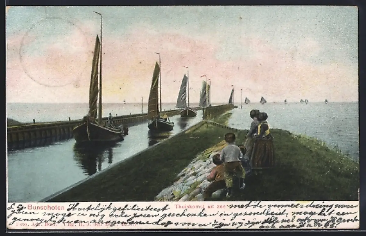 AK Bunschoten, Thuiskomst uit zee, Kinder & Segelboote