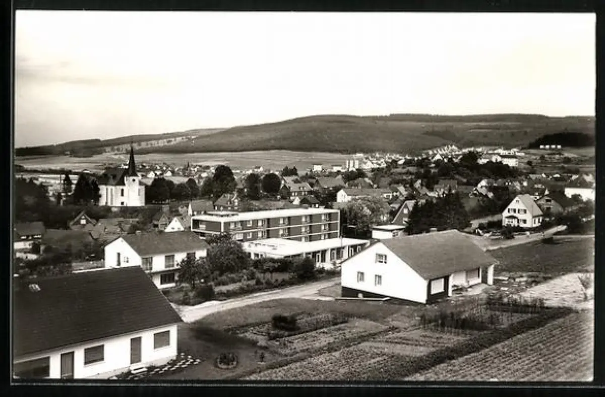 AK Burbach / Westerwald, Ortsansicht mit Kirche und Wohnhäusern