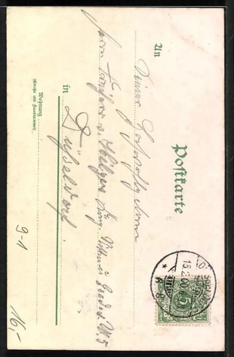 alte Ansichtskarte, gelaufen 1900, Eckknicke links oben, guter Zustand
