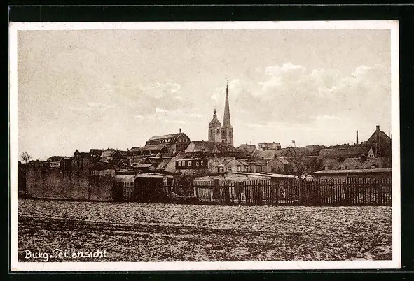 AK Burg, Teilansicht mit Kirche
