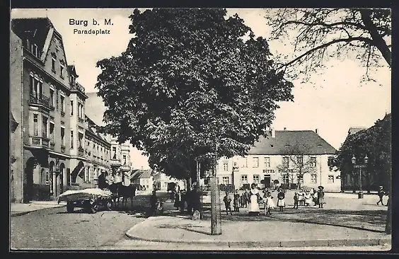 AK Burg b. M., Paradeplatz mit Hotel Roland