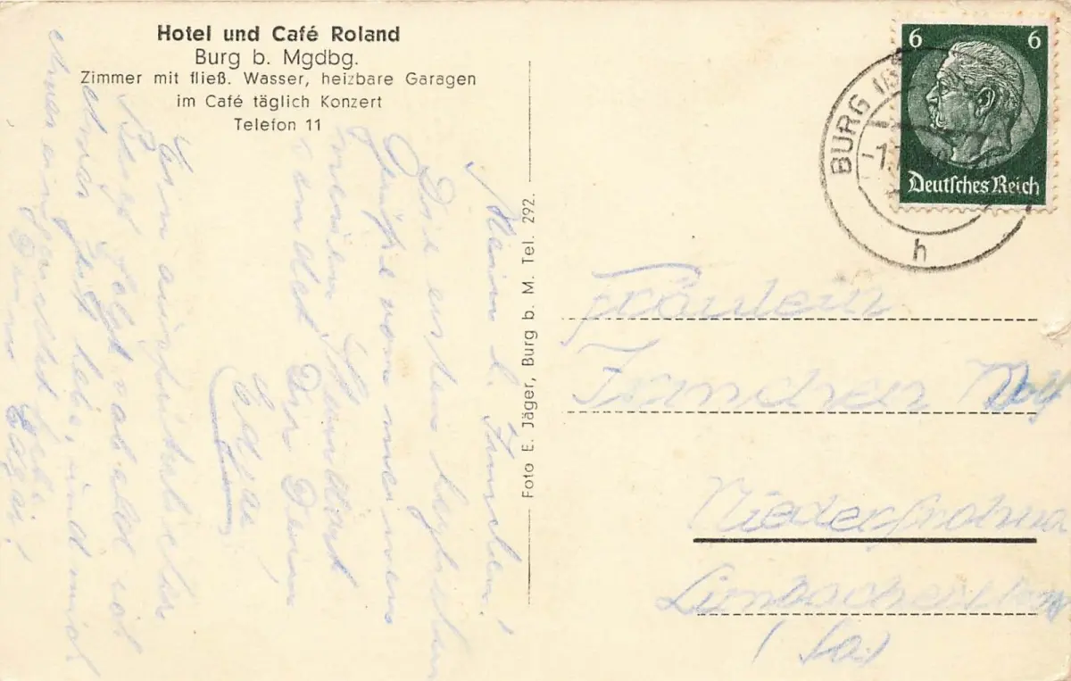 AK Burg bei Magdeburg Hotel und Café Roland 1939 Sachsen-Anhalt gelaufen