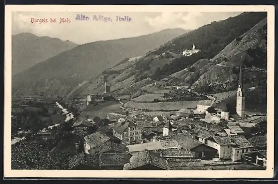 AK Burgeis, Panoramablick mit Burg und Kirche