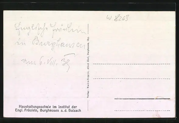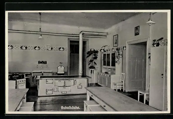 AK Burghausen a. d. Salzach, Haushaltungsschule im Institut der Englischen Fräulein, Schulküche, Innenansicht