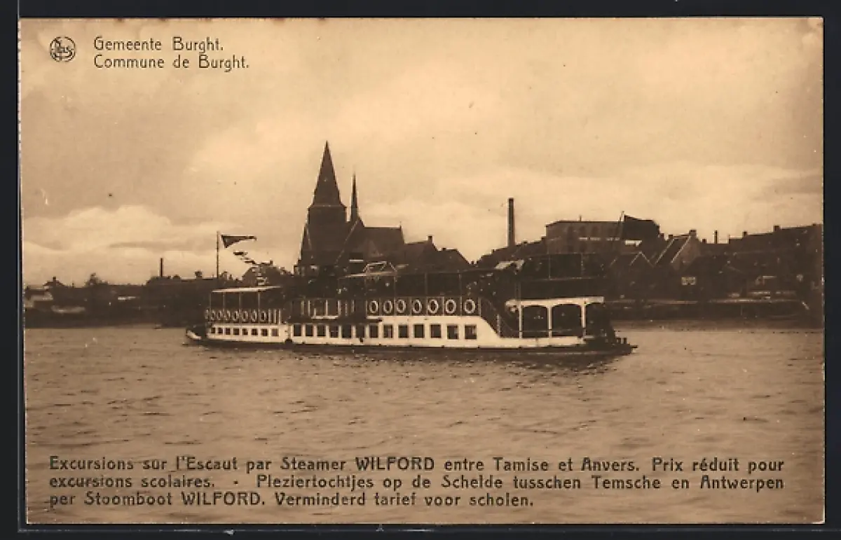 AK Burght, Excursion sur l`Escaut par Steamer Wilford, Dampfer