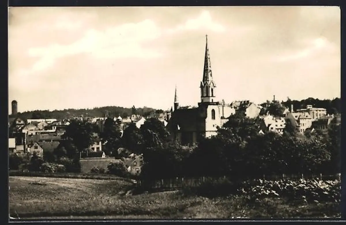 AK Burgstädt /Sa., Ortsansicht mit Kirche