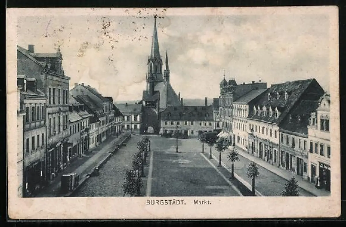 AK Burgstädt / Sachsen, Partie am Markt mit Kirche