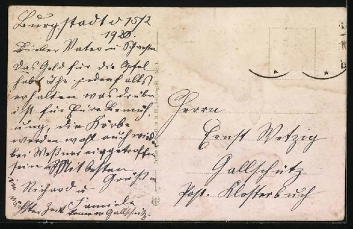 alte Ansichtskarte, gelaufen, Briefmarke entfernt, Stempelspur, guter Zustand