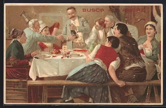 AK Buscs à l`Ancre, Feiernde mit Weinflasche am Tisch