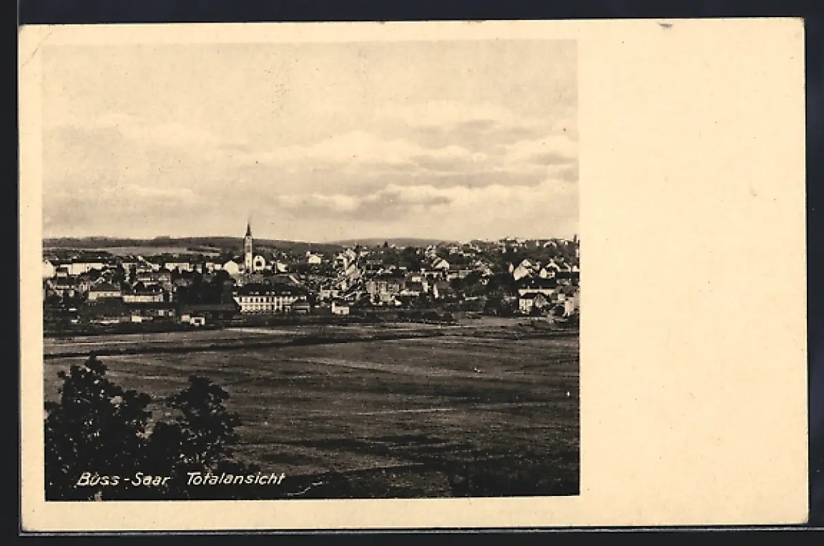 AK Buss /Saar, Totalansicht mit Feldern aus der Vogelschau