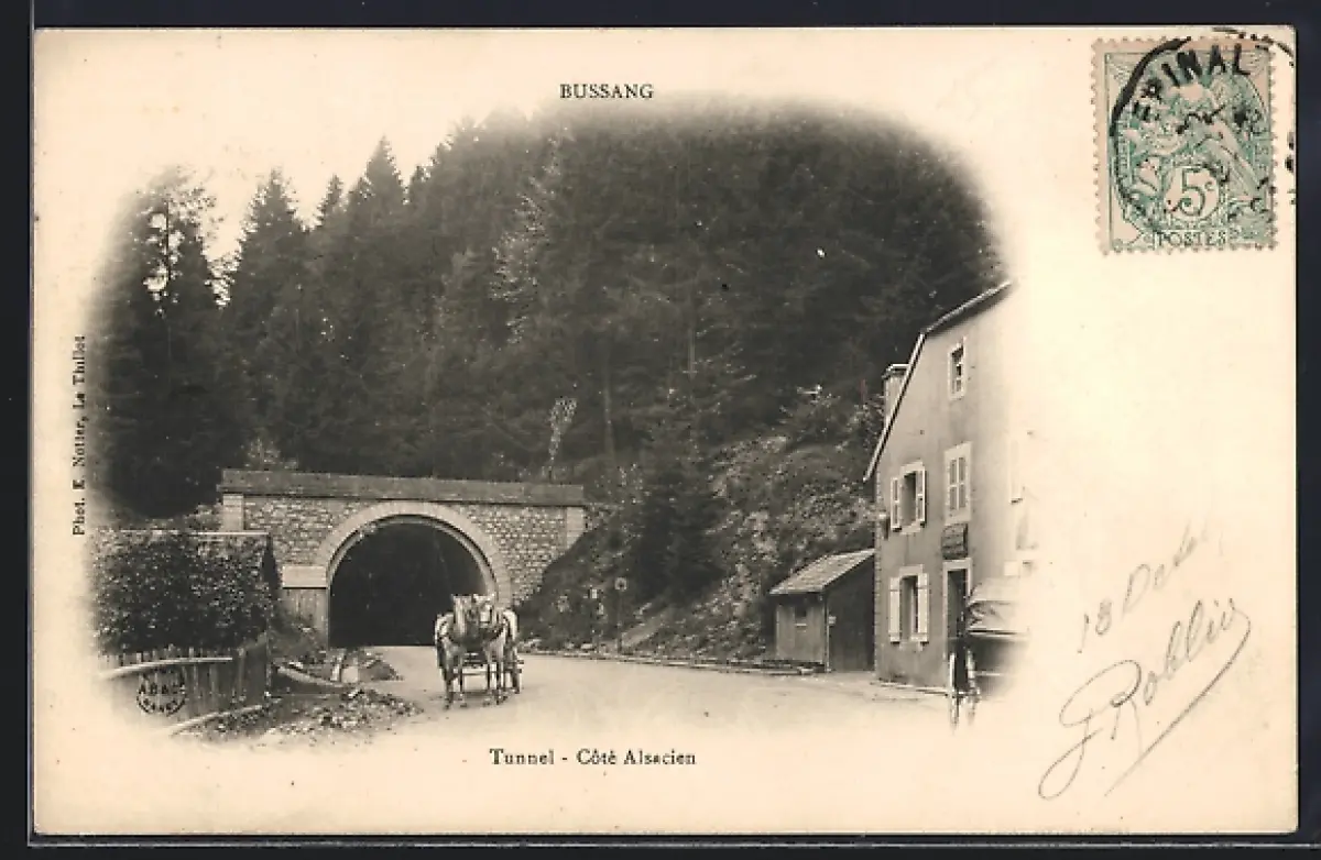 AK Bussang, Tunnel, Côté Alsacien avec charrette tirée par des chevaux