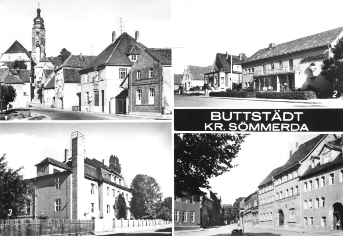 Ansichtskarte Buttstädt Kr. Sömmerda vier Abb., Version 1 Freiheitsstr., Lohstr., Städtisches Krankenhaus, Rooseveltstr. Erhaltung I-II ungelaufen Druckvermerk: 1980 Herstellungsland: DDR Verlag: Bild und Heimat, Reichenbach i. V. - 01 09 11 029