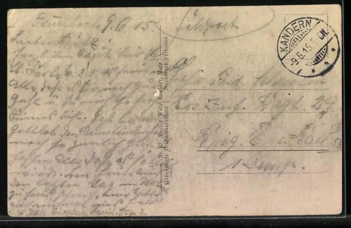 alte Ansichtskarte, gelaufen 1915, Eckknick re. oben, Abriebspur, guter Zustand