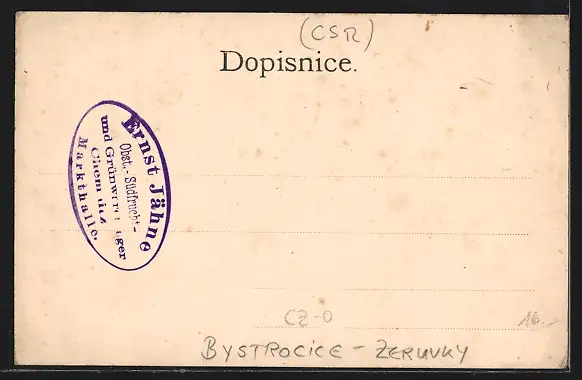 AK Bystrocice-Zeruvky, Strassenpartie mit Brücke, pompöses Gebäude, Ortsansicht
