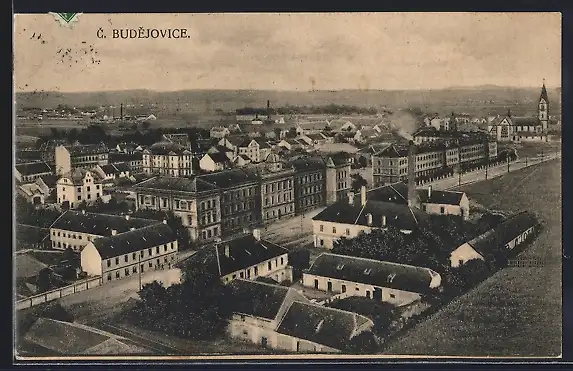 AK C. Budejovice, Ortsansicht aus der Vogelschau
