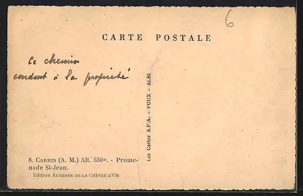 AK Cabris, Promenade St-Jean avec chemin bordé d`arbres et mur en pierre