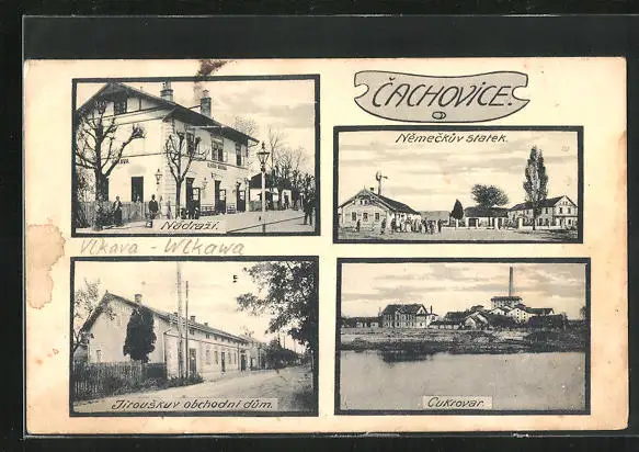 AK Cachovice, Nadrazi, Cukrovar, Nemechuv statek