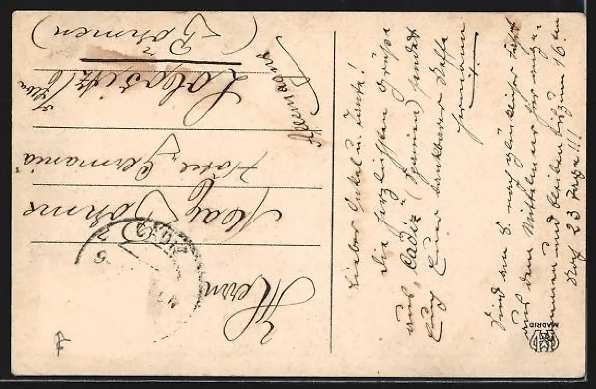 alte Ansichtskarte, gelaufen, Briefmarke entfernt, guter Zustand