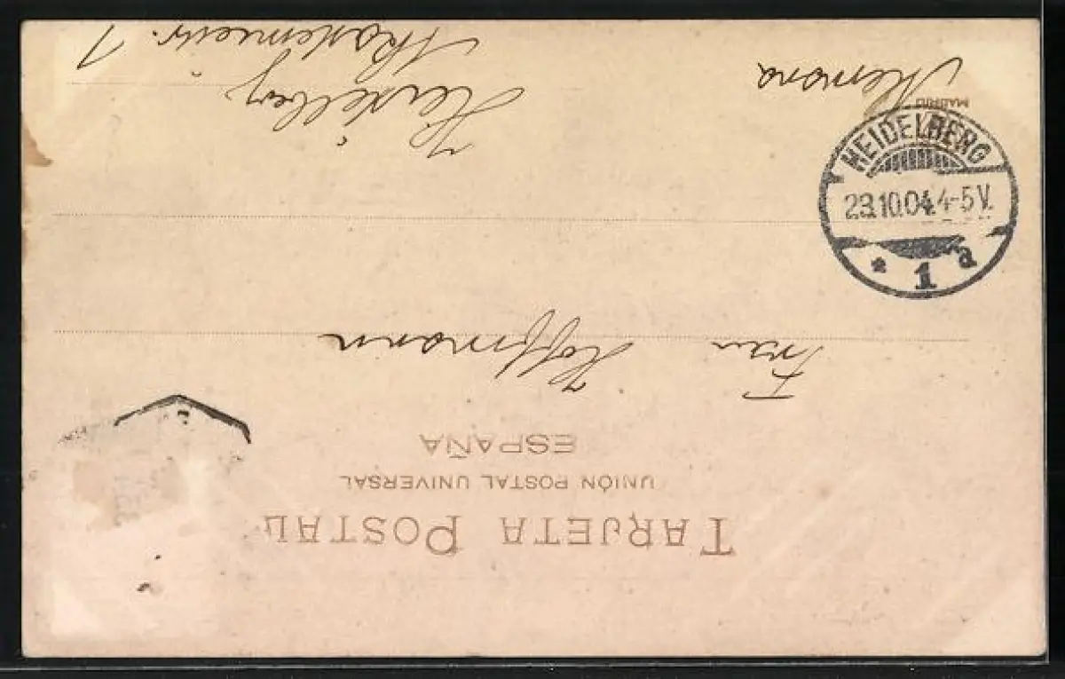 alte Ansichtskarte, gelaufen 1904, Briefmarke entfernt, rückseitig Oberflächenschaden, Albumspuren, guter Zustand