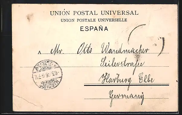 alte Ansichtskarte, gelaufen 1905, Briefmarke entfernt, rückseitig Oberflächenschaden, Eckknicke li. oben und re. unten, guter Zustand