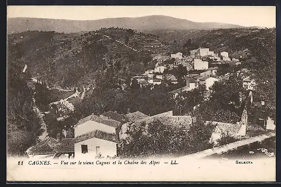 AK Cagnes, Vue sur le vieux Cagnes et la Chaîne des Alpes