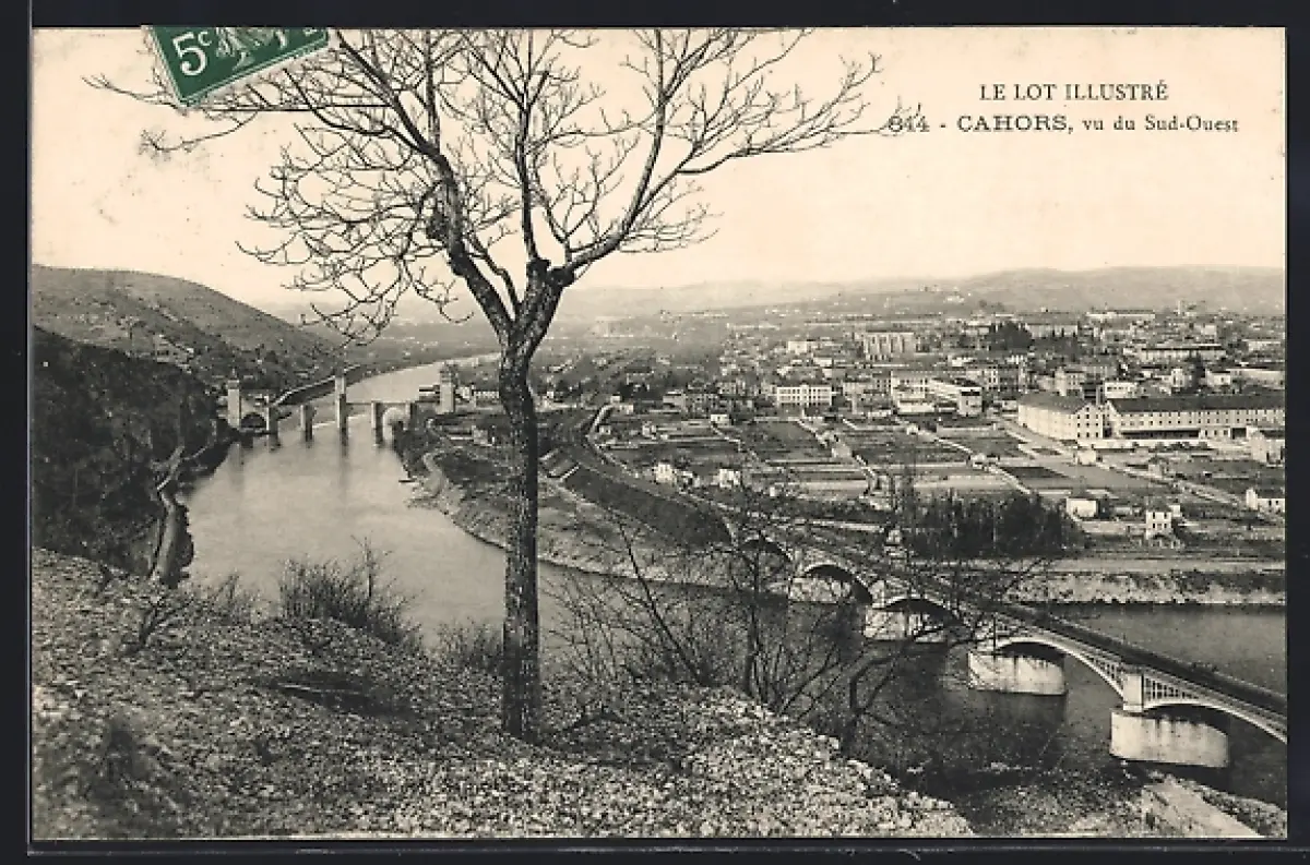 AK Cahors, Vue du Sud-Ouest avec le pont sur le Lot et panorama urbain