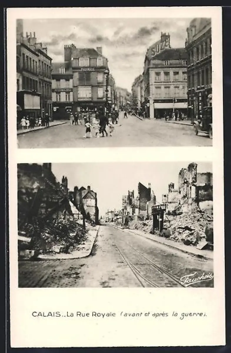 AK Calais, La Rue Royale avant et après la guerre